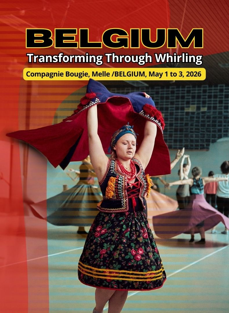 After the beautiful energy of our fully booked March workshop, we are very pleased to return to Belgium from May 1 to 3 with a new gathering. This continuation is made possible thanks to the dedication of Eva Zabarylo, founder and director of Compagnie Bougie, and the warm cooperation of my dear friend Karlien Buysse, a whirler and instructor whose clarity, sensitivity and artistic approach I deeply appreciate. I am grateful to collaborate with her in this shared effort to support all who feel connected to whirling.